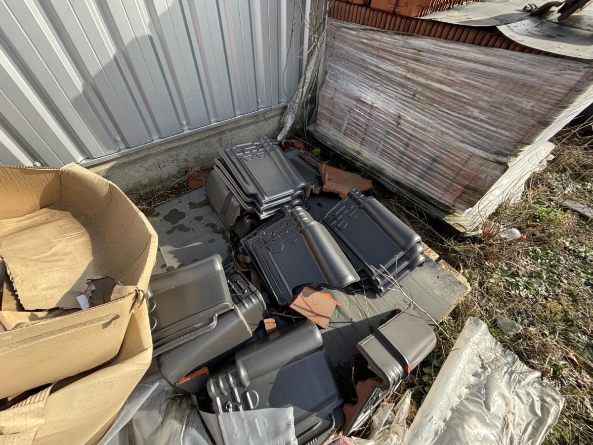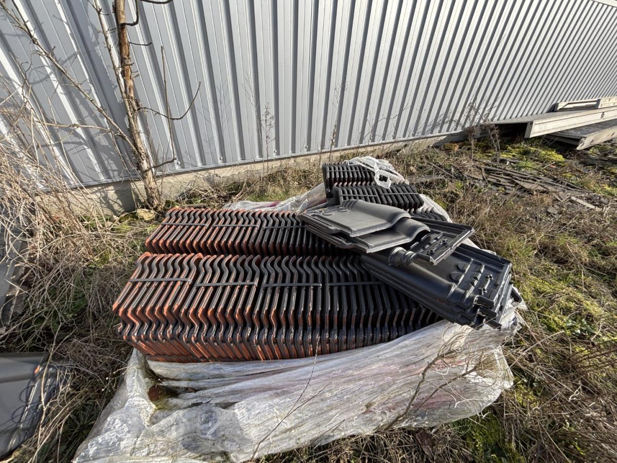 Diverse dakpannen, nokpannen, ladderhaken.