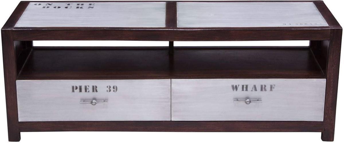 Tv-meubel uit tropisch mahoniehout en geborsteld aluminium 140 x 45 x 50 cm