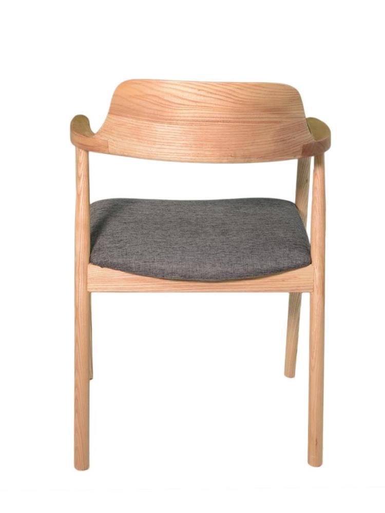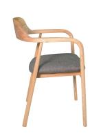 Armstoel in massief essenhout met grijze stoffen zit 55x58xH79 cm