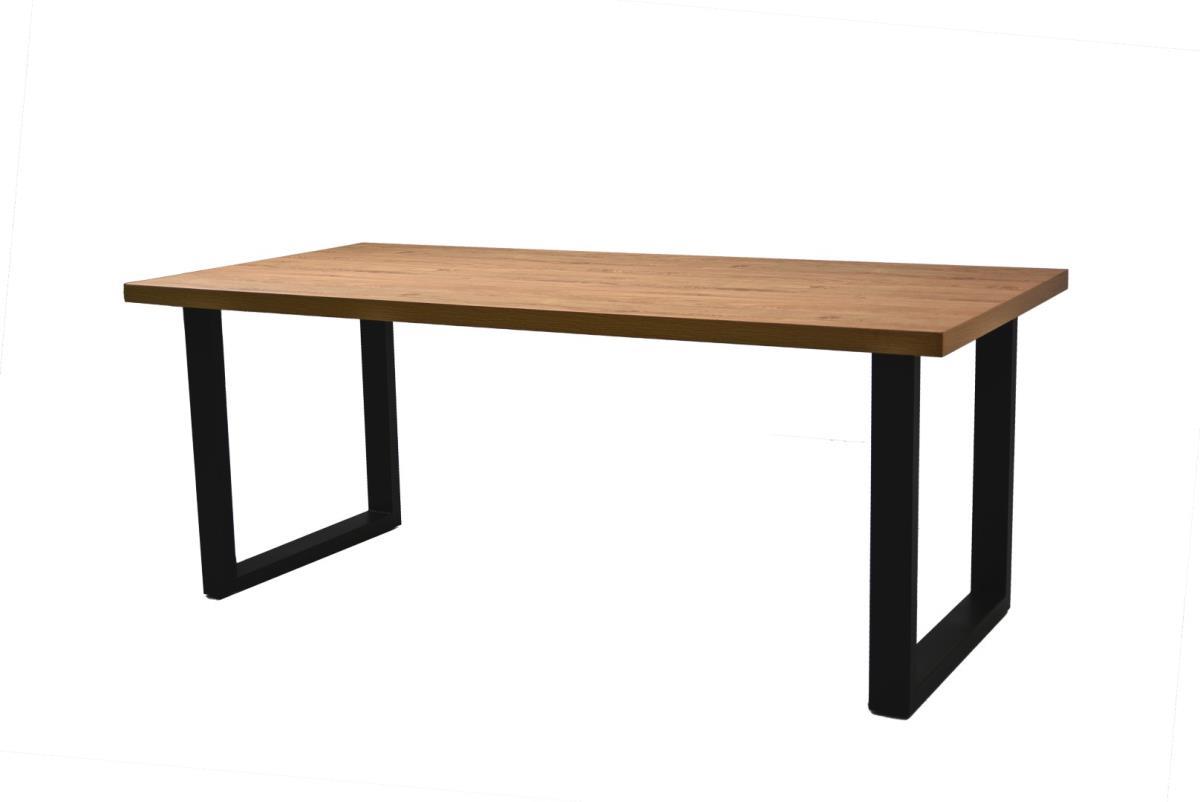 Rechthoekige eettafel in eikkleur met metalen U-poten - anti kras 3D folie 190x90xH77 cm