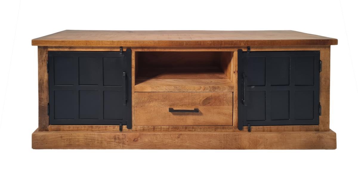 Tv-kast in massieve mango met twee metalen deuren en een lade 150x45xH54 cm