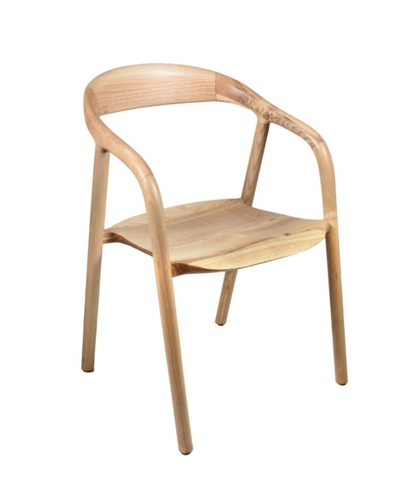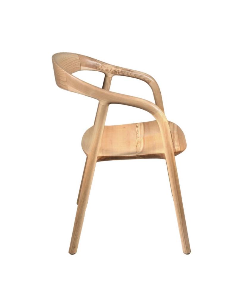 Armstoel in massief essenhout met houten zit 55x56xH78 cm