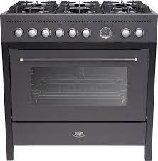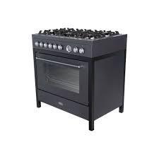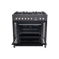 Fornuis,gas,90 cm,6 branders,1 oven,mat zwart,gietijzeren pannendragers