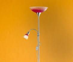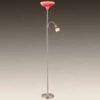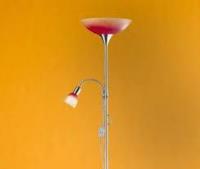 Staande lamp,satijn/nikkel,oranje/rood glas,hoogte 178 cm