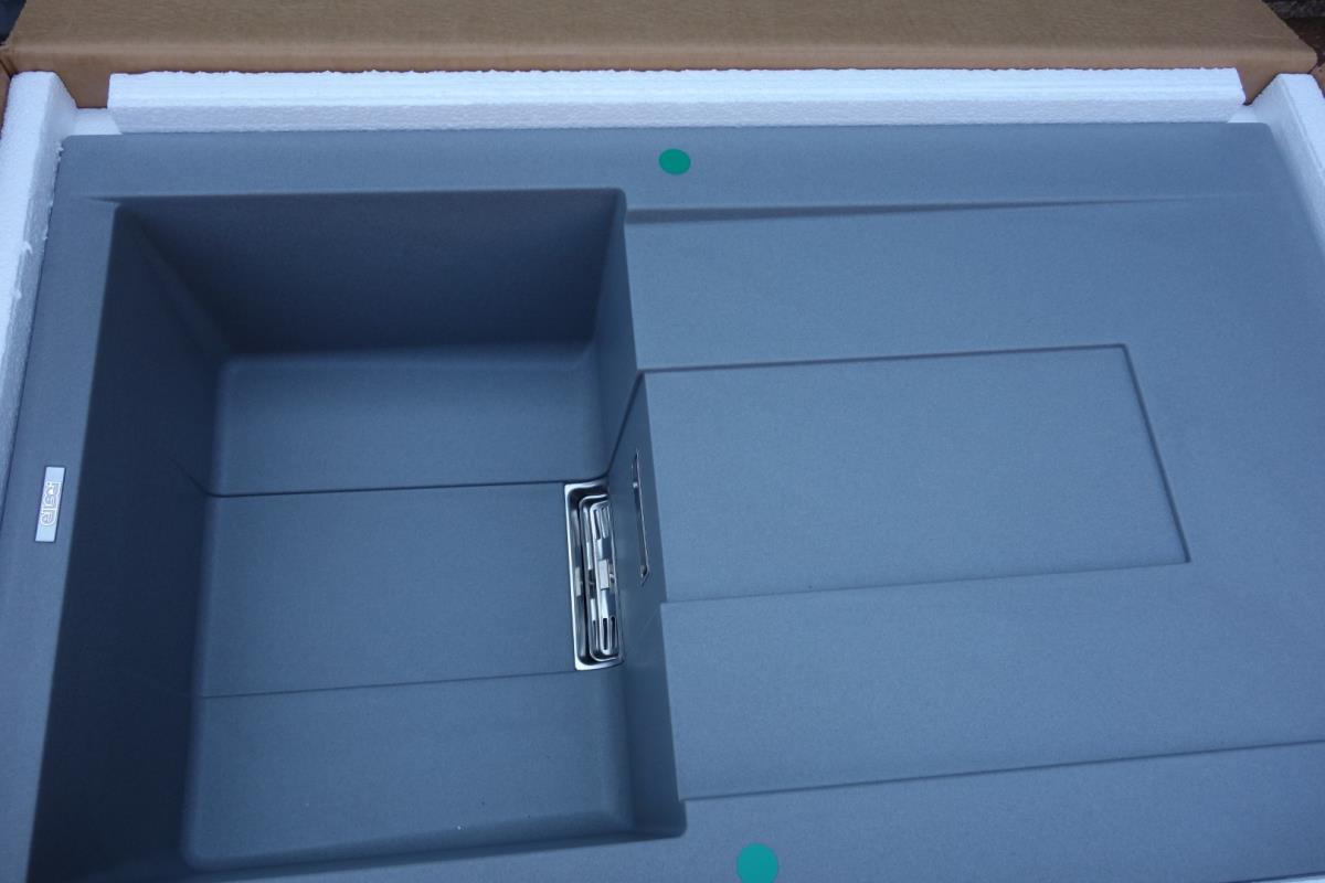 Spoelbak,composite,1 bak + afdruip,omkeerbaar,kleur Cemento,86 cm