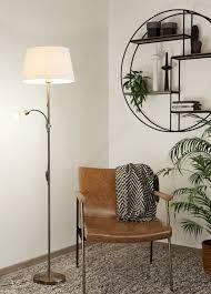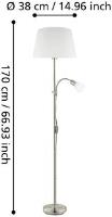 Staande lamp,nikkel mat met wit stoffen kap,hoogte 170 cm