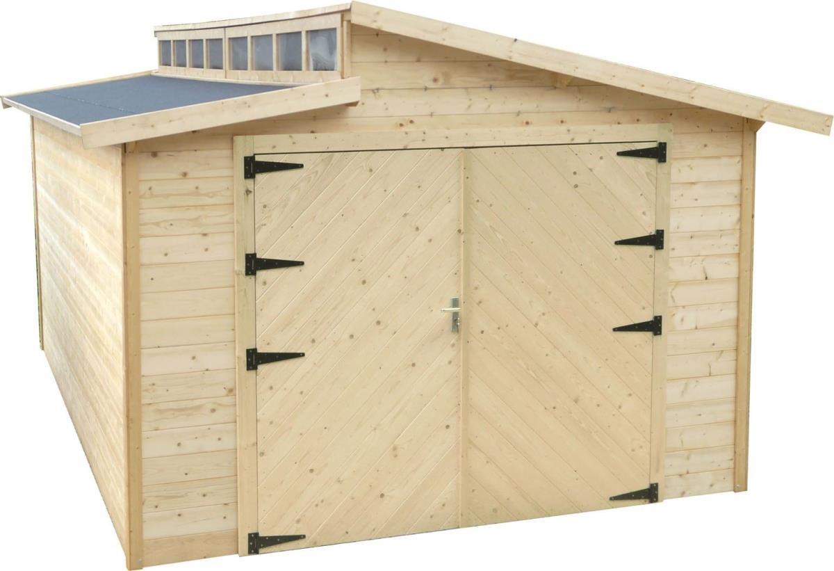 De garage torino met dubbele houten deur,afmetingen: 3600 x 5700 x 2921mm,fundament:3600 x 5700mm,opervlakte:20.88m2,binnenoppervlakte 20.06m2,wanddikte 28mm,type dak:zadeldak met zwarte roofing,oppervlakte:onbehandeld te behandelen 45m2,gratis levering aan huis