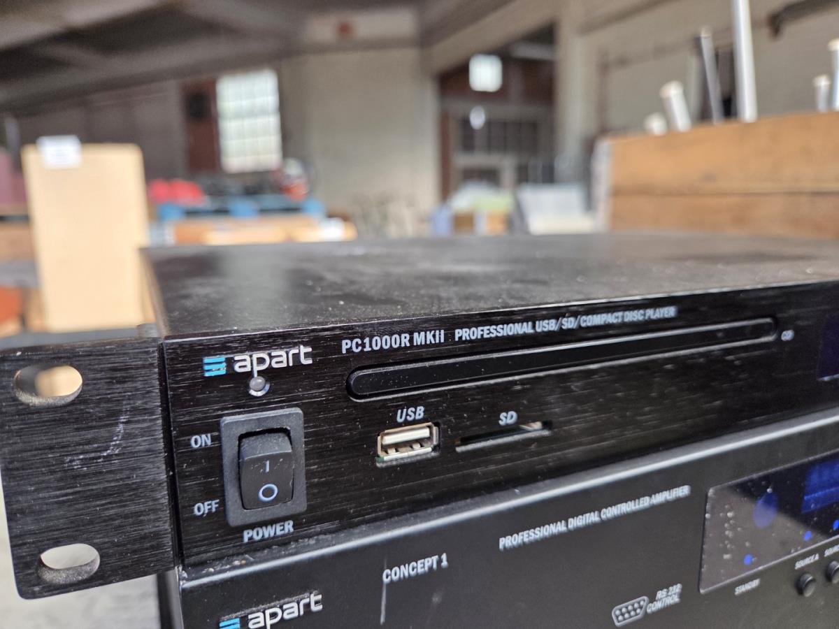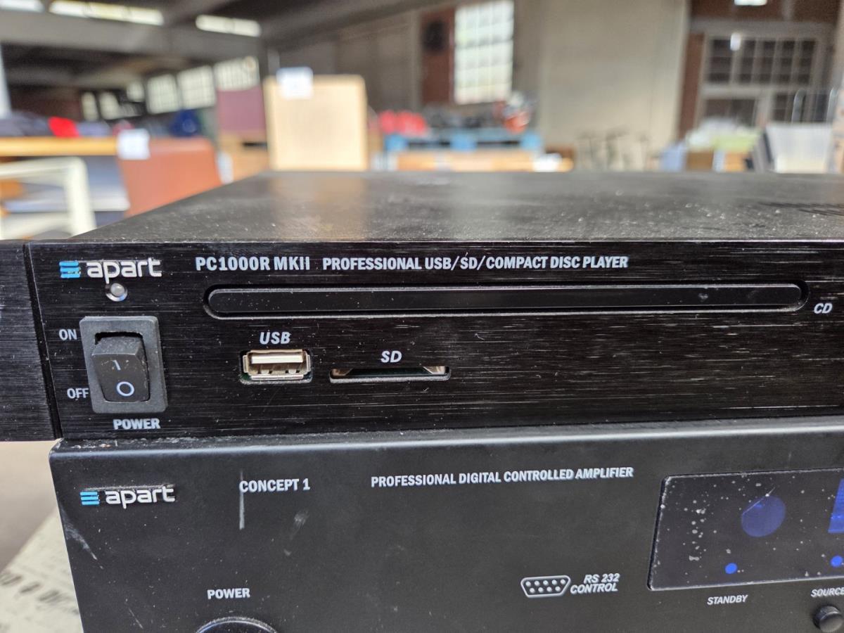 oa Amplifier APART Concept 1, professionele USB-SD-Compact Disc player PC1000R MKII, POSS PSHS60BK,