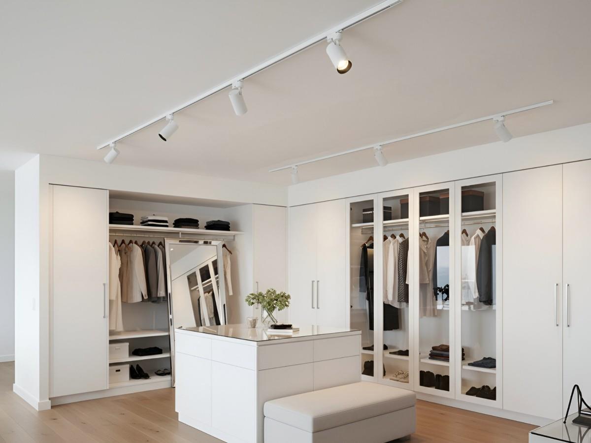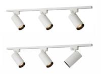 2 x 2 stuks 1 fase 2 draad 100cm rail - materiaal aluminium - bevestiging inclusief - 220-240V - afdichting IP20 - 1 stuk door verbinder - product kleur zand wit en zwart - 6 stuk railspots GU10 armatuur afm. Ø 60 x 120mm draaibaar 350° en kantelbaar 90° - bulb niet inbegrepen - de rail kan eenvoudig op de gewenste lengte worden gezaagd - geschikt voor binnen - SKU 902 SKU 906 SKU 826