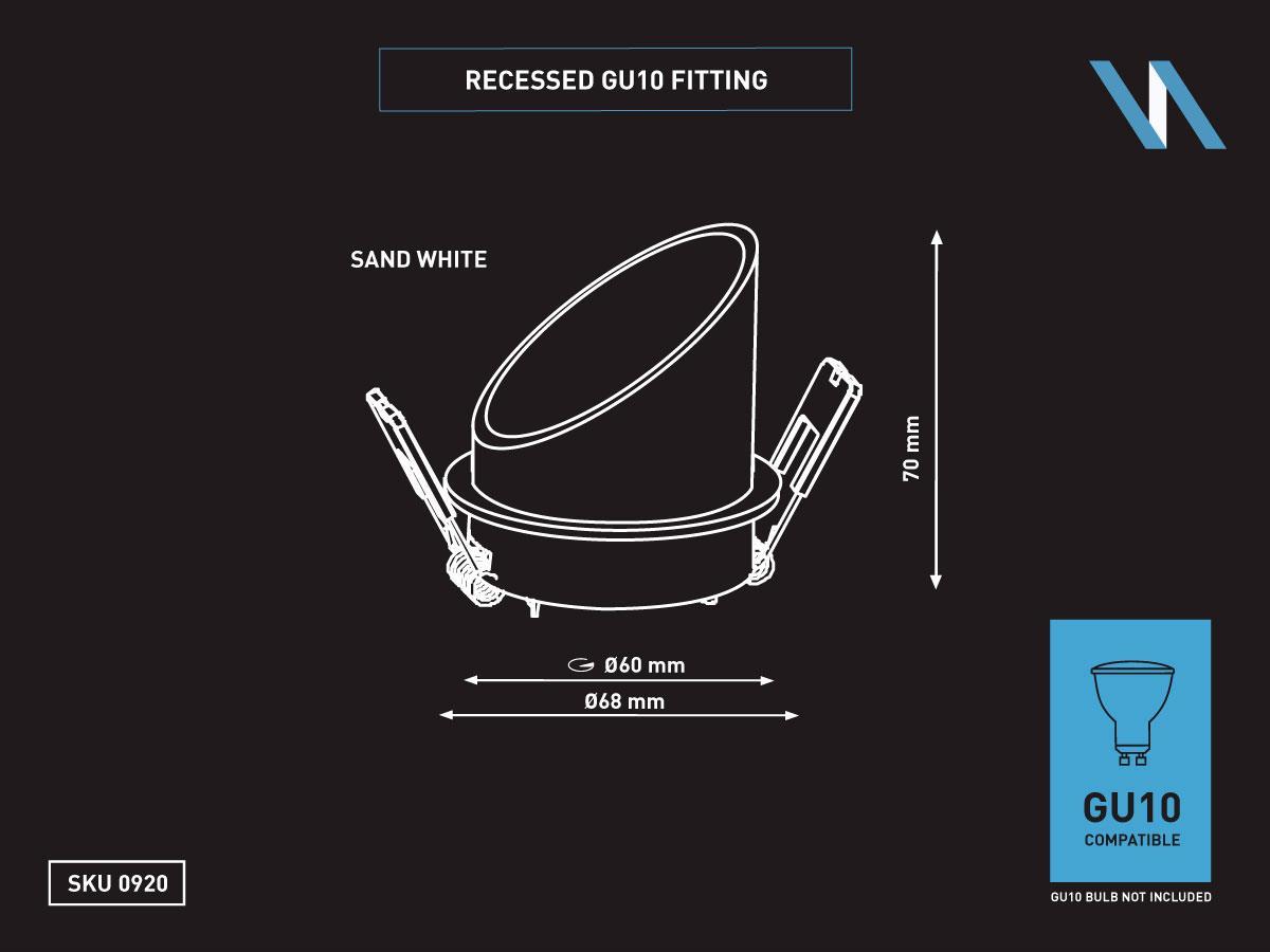 50 x GU10 Inbouw design armatuur cilinder zand wit met lamphouder - afdichting IP20 - product kleur zand wit - afm. Ø 68 x 70mm - inbouwdiameter ø 60mm - materiaal aluminium - fitting GU10 - inclusief keramiek lamphouder - lichtbron bulb niet inclusief - geschikt voor binnen - een bulb invoer - voltage 220-240V - SKU 00920 SKU353