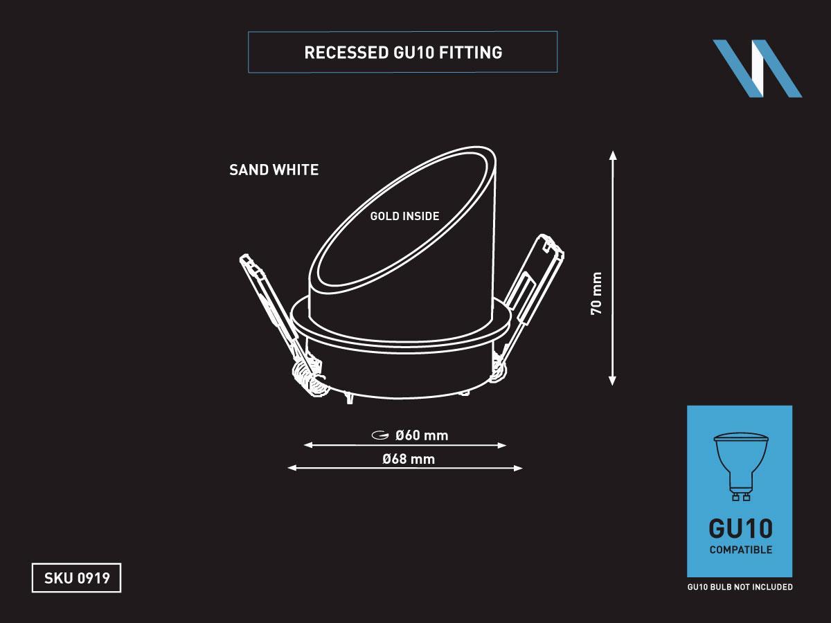 50 x GU10 Inbouw design armatuur cilinder zand wit en zwart met lamphouder - afdichting IP20 - product kleur zand wit zwart - afm. Ø 68 x 70mm - inbouwdiameter ø 60mm - materiaal aluminium - fitting GU10 - inclusief keramiek lamphouder - lichtbron bulb niet inclusief - geschikt voor binnen - een bulb invoer - voltage 220-240V - SKU 00919 SKU353