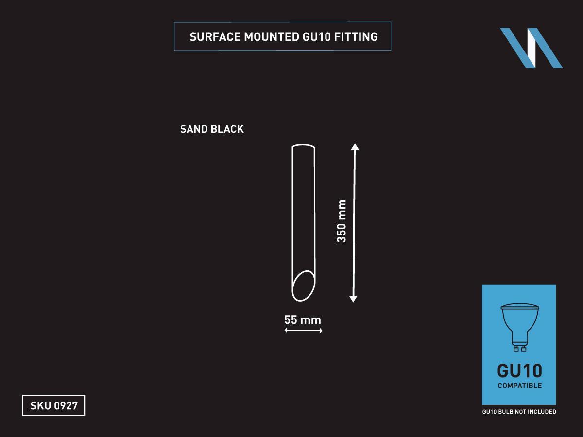 12 x GU10 Opbouw design armatuur cilinder zand zwart 35cm - afdichting IP20 - product kleur zand zwart - afm. Ø 55 x 350mm -bevestiging inclusief - materiaal aluminium - fitting GU10 - bulb niet inbegrepen - geschikt voor binnen - een bulb invoer - voltage 220-240V - SKU 0927