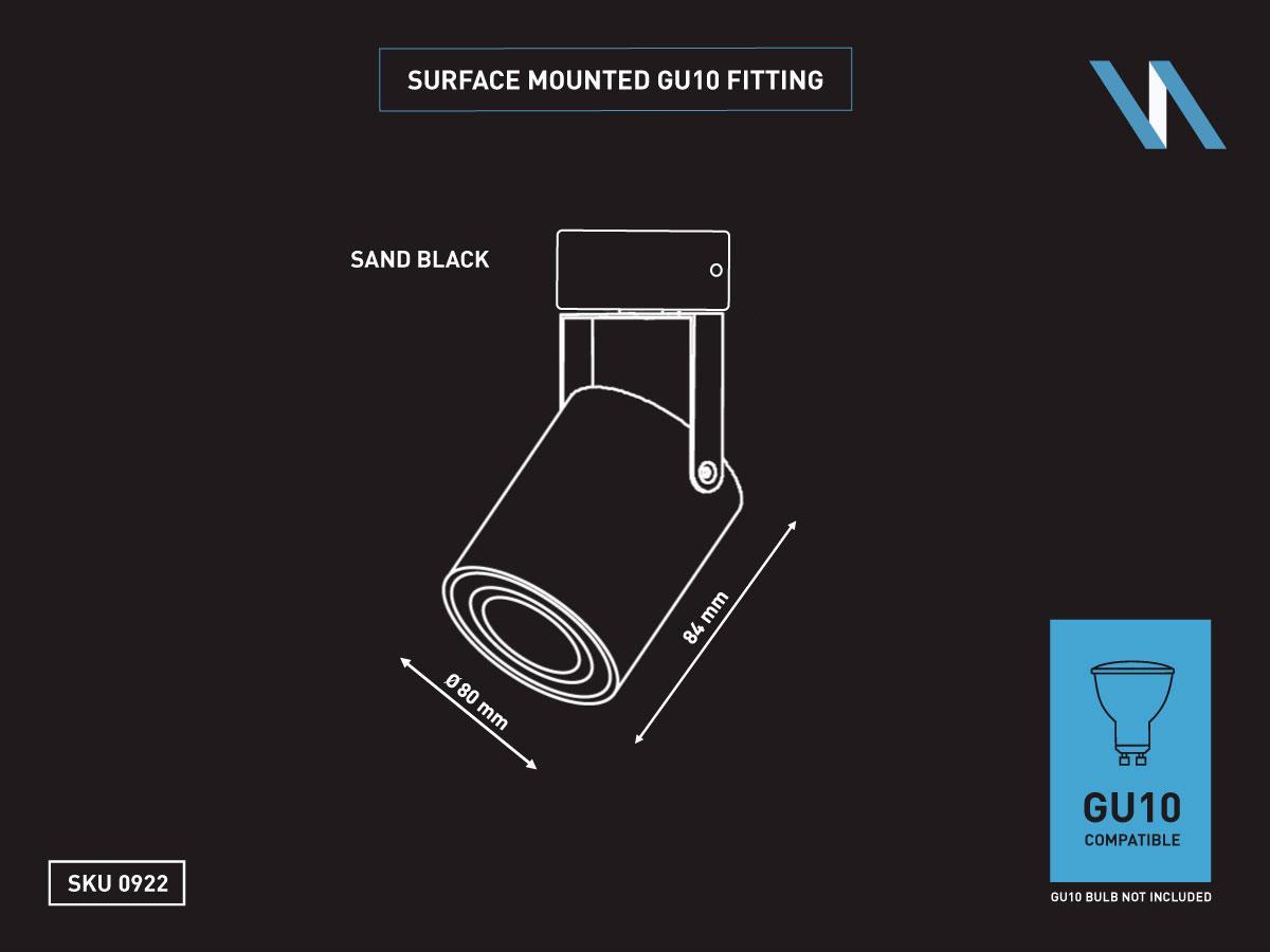 8 x GU10 Opbouwspot Armatuur cilinder zand zwart draaibaar - afdichting IP20 - product kleur zand zwart- afm. Ø 80 x 84mm - kantelbaar 180° en draaibaar 360° - materiaal aluminum - bevestiging inclusief - fitting GU10 - inclusief aluminium anti verblinding honingraat filter 50mm allen geschikt voor GU10 met lens - bulb niet inbegrepen - geschikt voor binnen - een bulb invoer - voltage 220-240V - max 20 watt - SKU 00922 SKU 1165