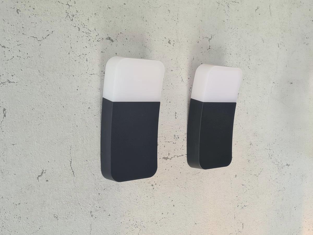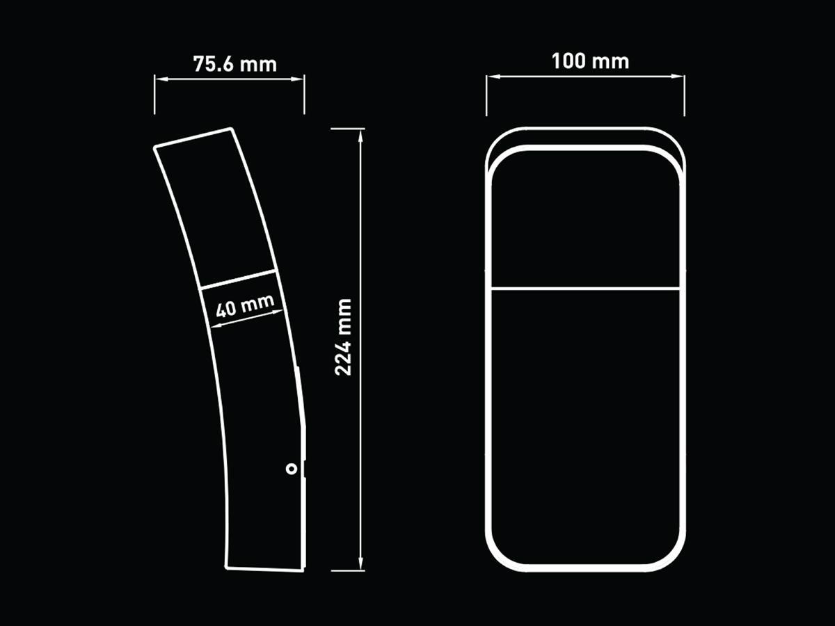 2 x 9.5 watt LED Wandlamp gebogen design zand zwart warm wit - lichtkleur 3000K warm wit - lichtstroom 500 lumen - SMD LED - IP54 waterdicht - materiaal aluminum en opal PC diffuser - afm 224 x 40 x 100mm - voltage 220-240V - bevestiging inclusief - geschikt voor binnen en buiten - SKU 00724