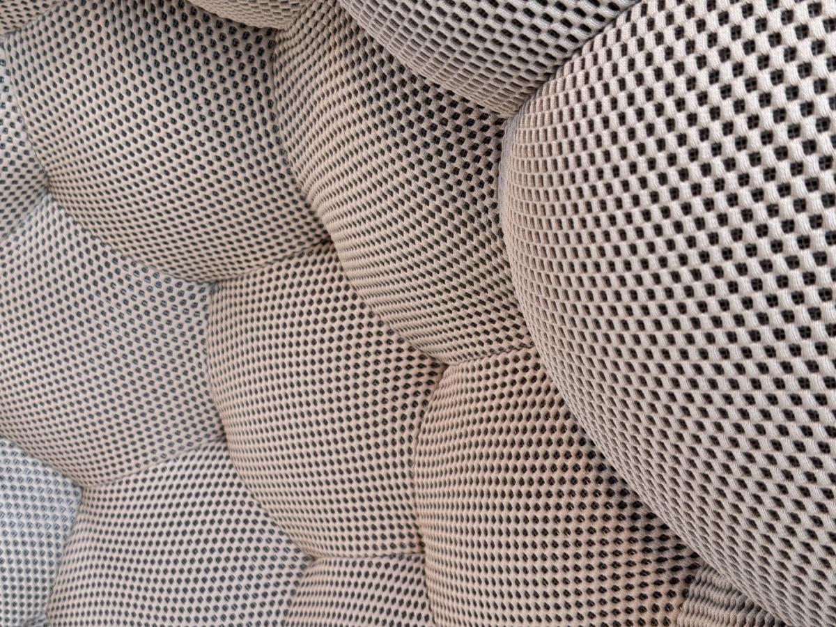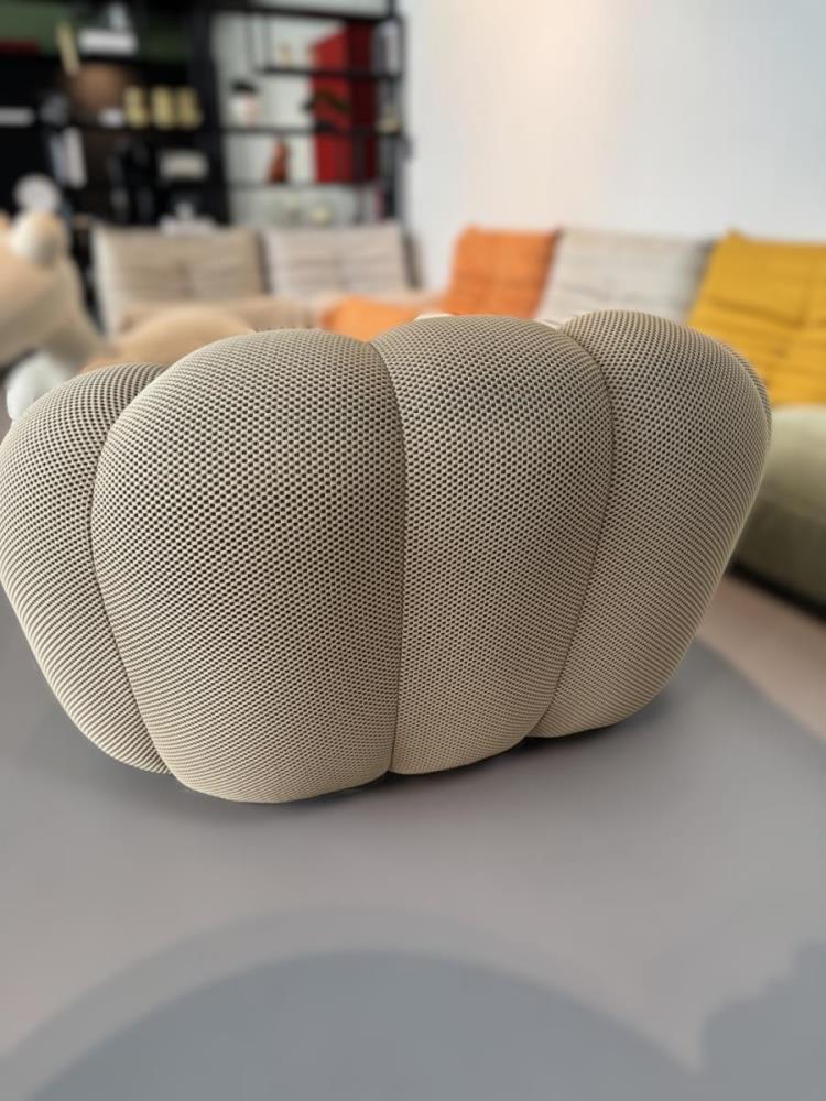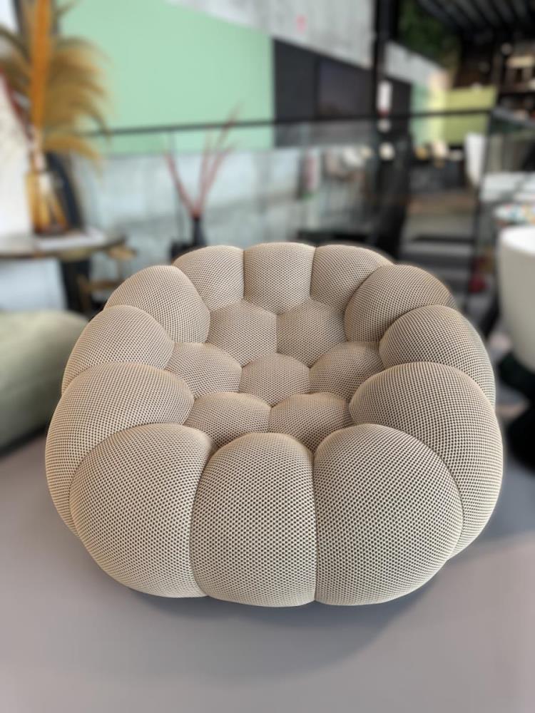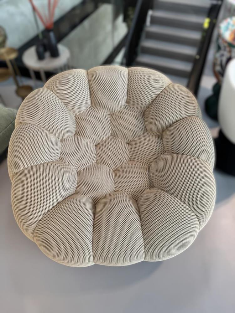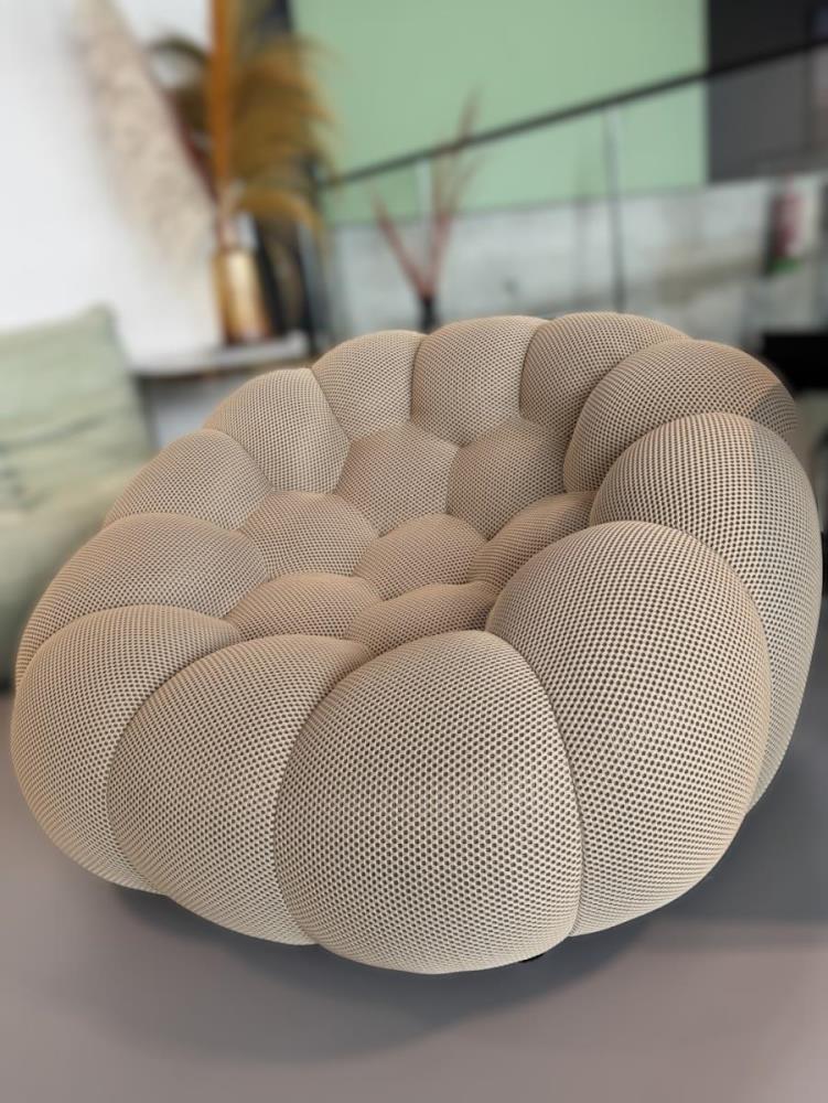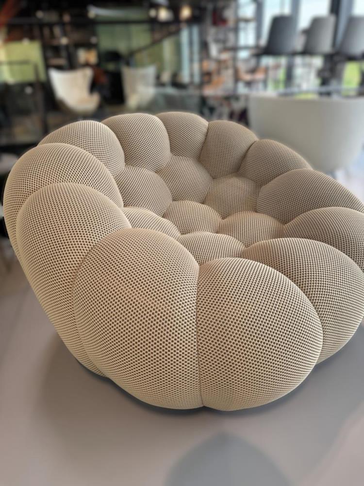 1x Design fauteuil, beige, polyester stof, model: BBL-13, afmetingen: 123x118x71cm, ongebruikt
